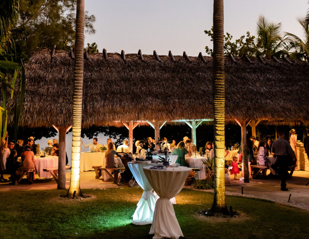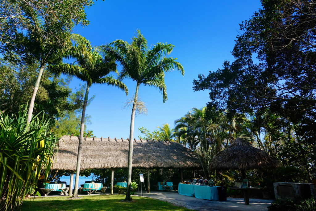 Built by members of the Seminole Indian tribe, the Chickee picnic area is an outside covered pavilion next to beautiful Sarasota Bay. This tiki-hut atmosphere can be transformed from a casual beach setting to an elegant, on-the-water ambiance—a wonderful place to hold birthday parties, company picnics or casual wedding rehearsal dinners. Picnic area includes electricity, water, wooden picnic tables with chairs, existing grill with two smokers and existing seashell inlaid bar.